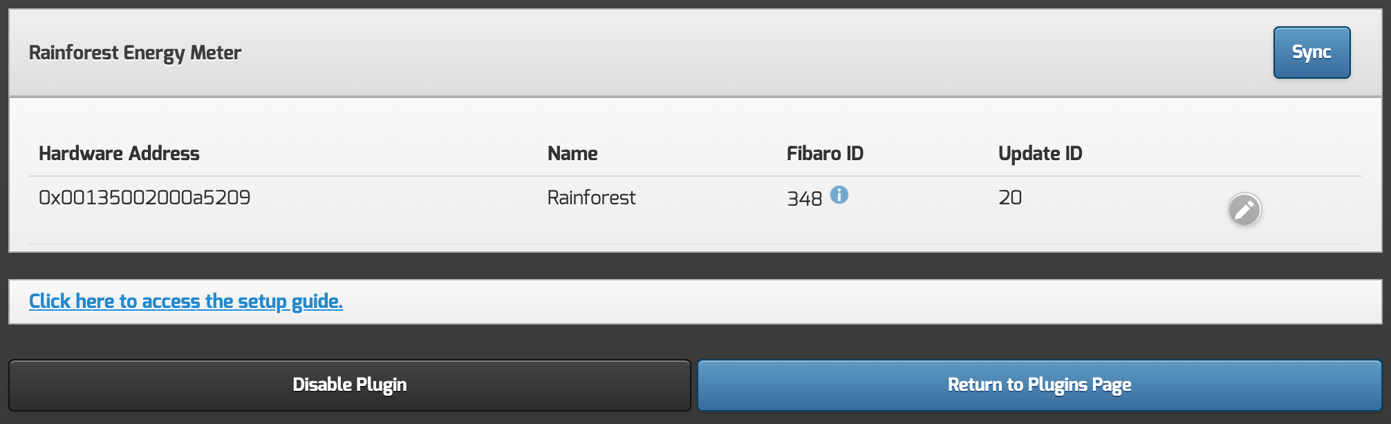 Clicking the OK button will complete the setup, and return you to the Settings page from the Plugin. Here you will be able to edit the device, and change its settings if required.